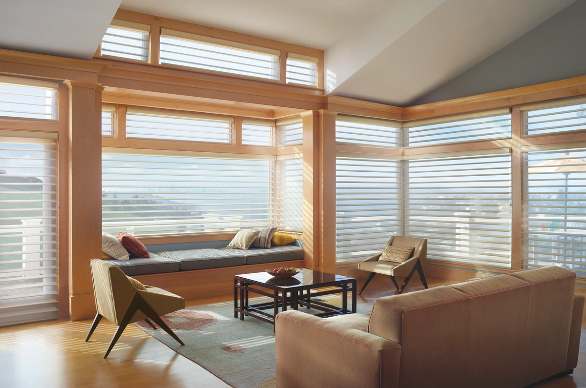 You can also make your living room a bastion of fashion-forward design by choosing Pirouette® Window Shadings. The single sheer panel is still effective at filtering light while creating a distinctly sleek look. And the curved horizontal vanes, which offer a dramatic effect thanks to the Invisi-Lift™ cord system, will help complete the serene atmosphere of your living room.